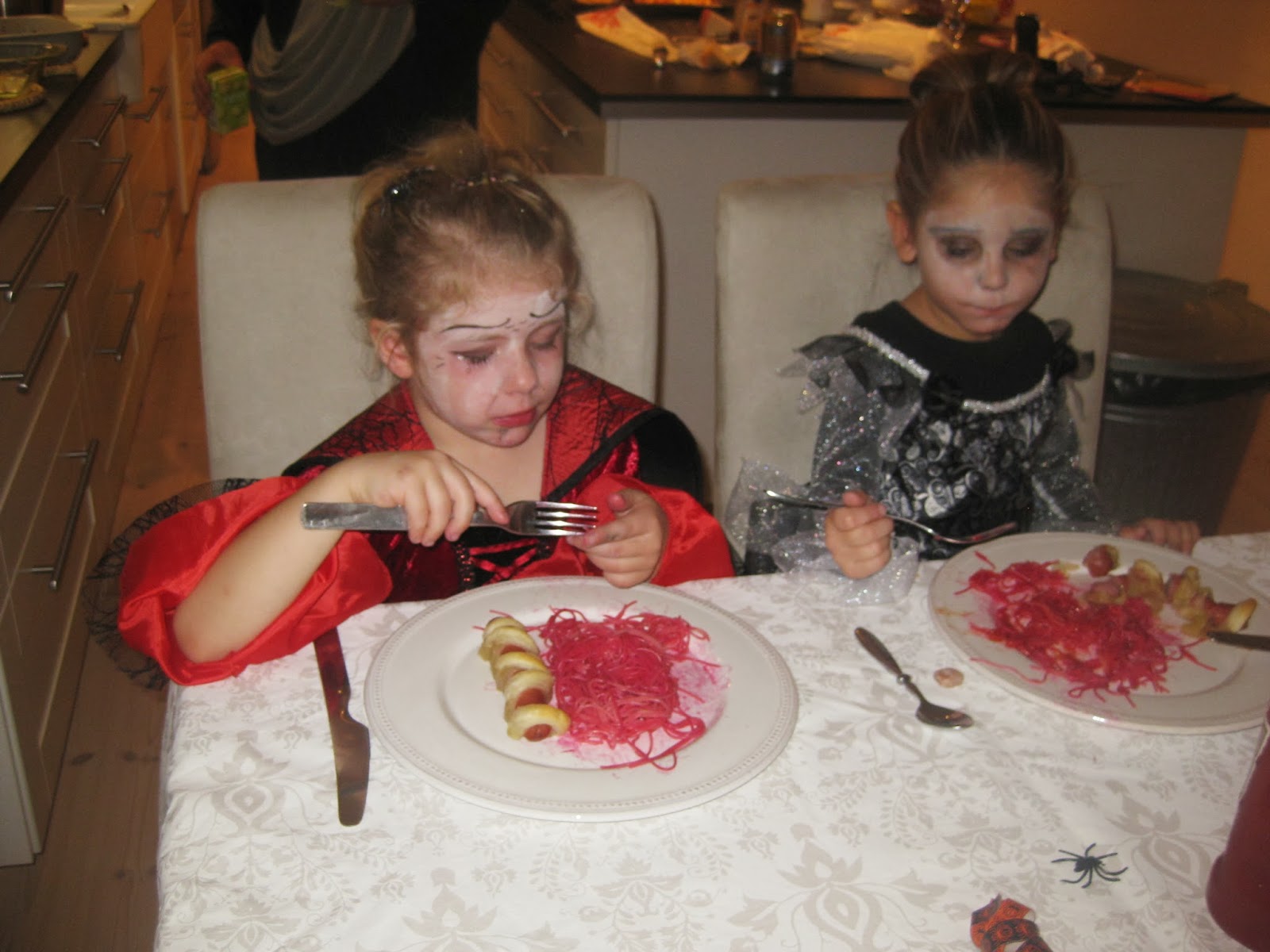 Till efterrätt blev det spindeltårtan, spökmuffins och spökmaräng :).